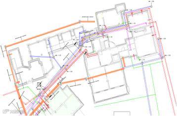 室外管网验证:依照设计图搭建原有设计模型,根据现场实际开挖条件,依据三维模型及施工难易程度,在模型中进行管综排布,避免与基础结构或景观位置碰撞,降低施工难度,保证施工效果。