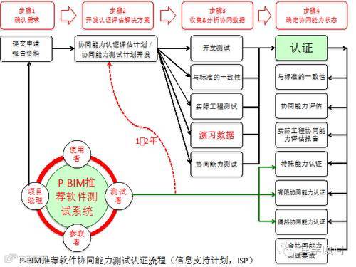 9月12日,中国BIM发展联盟深圳大学建筑互联网与BIM实验研究中心召开客座研究员单位成员会议,讨论通过了《P-BIM推荐软(硬)件认证指南》,明确了P-BIM推荐软件协同能力测试认证流程: