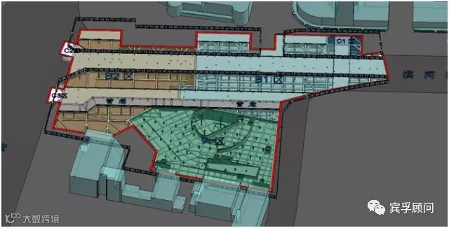 项目依托BIM技术进行项目整体分区建设BIM模拟,本工程根据施工区域整体工程划分为三个工区,分别为A区、B1区、B2区,附属工程划分为C1区、C2区、C3区,主体三个工区采取流水作业的方式进行施工。项目通过虚拟施工,对施组方案进行了优化和深化设计。