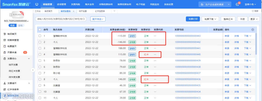1、在销项发票池找到需要红冲的发票