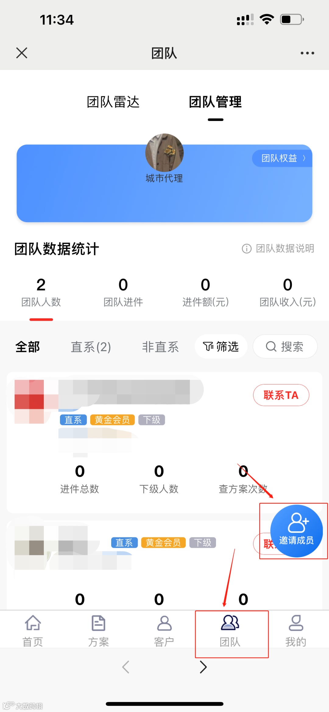 成功注册后,可点击系统中的“团队管理”邀请成员发送招募海报或链接分享给用户,用户完成注册后即成为您的直推合伙人。