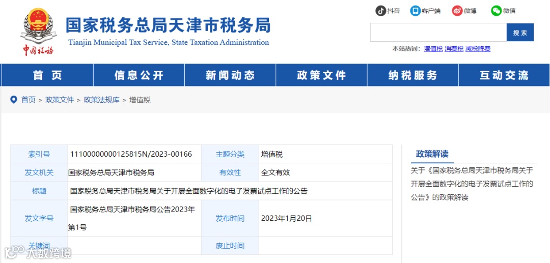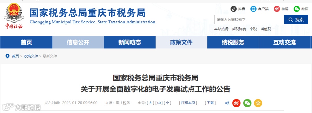 继广东省(不含深圳)、上海市、内蒙古自治区、四川省、厦门市5地推行全面数字化的电子发票后,2023年1月20日,陕西、青岛、大连、重庆、天津5省市税局同时发文,宣布自1月28日起开展实施全电发票开票试点。