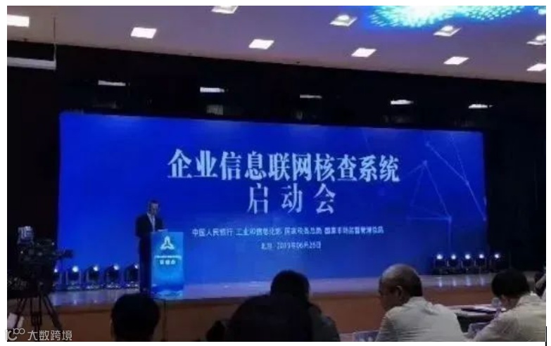 2019年6月26日,中国人民银行、工业和信息化部、国家税务总局、国家市场监督管理总局四部门联合召开企业信息联网核查系统启动会。