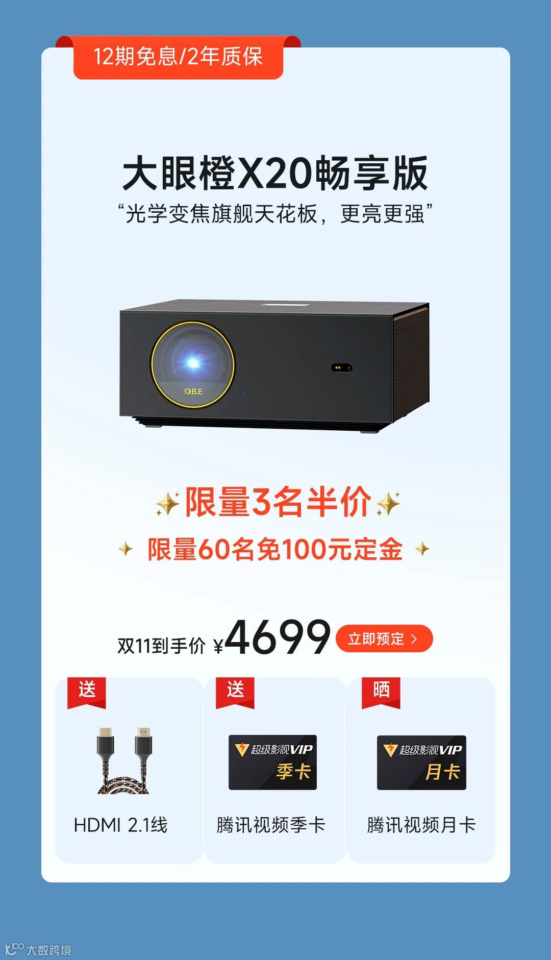 专注于智能投影仪研发智造与提供行业解决方案。关注大眼橙,了解大屏视界,分享品质生活。点我获取投影知识、玩机攻略、最新优惠、活动快讯、客服咨询等一手爆料!