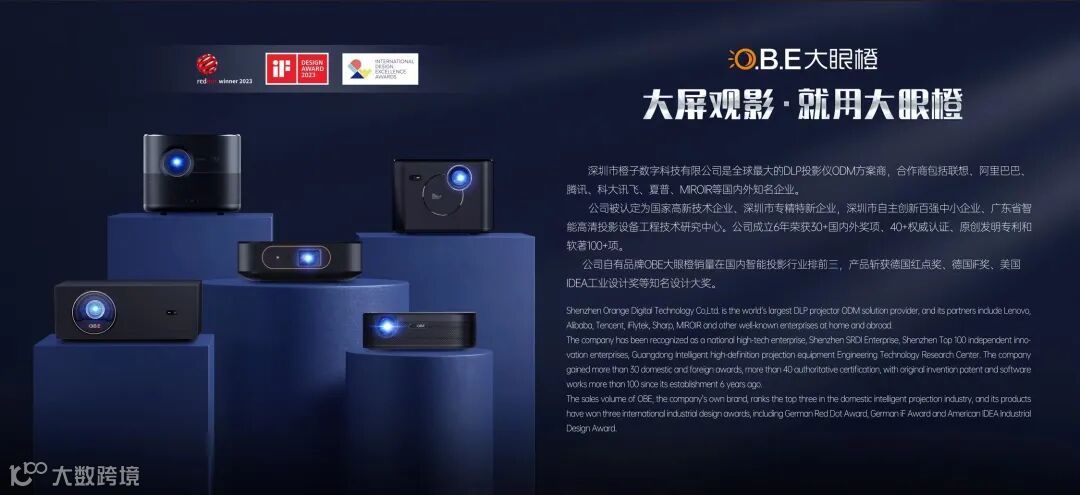 公司自2017年成立至今,已取得25项国内外大奖,40+权威认证,100+专利及软著证书。企业创始人刘正华先生多次接受央视CCTV深度访谈。旗下自主品牌大眼橙,自诞生起便凭借过硬的产品实力,每年都会斩获多项国内外大奖,从2018年大眼橙V2被评为“深圳礼物”,到2022年大眼橙X11斩获美国IDEA工业设计大奖,再到2023年大眼橙X7DPro和大眼橙H3双双斩获德国红点设计大奖,大眼橙在2022年被央视网评为央视网超级品牌”。目前,大眼橙已发展成为了智能投影行业的头部品牌。