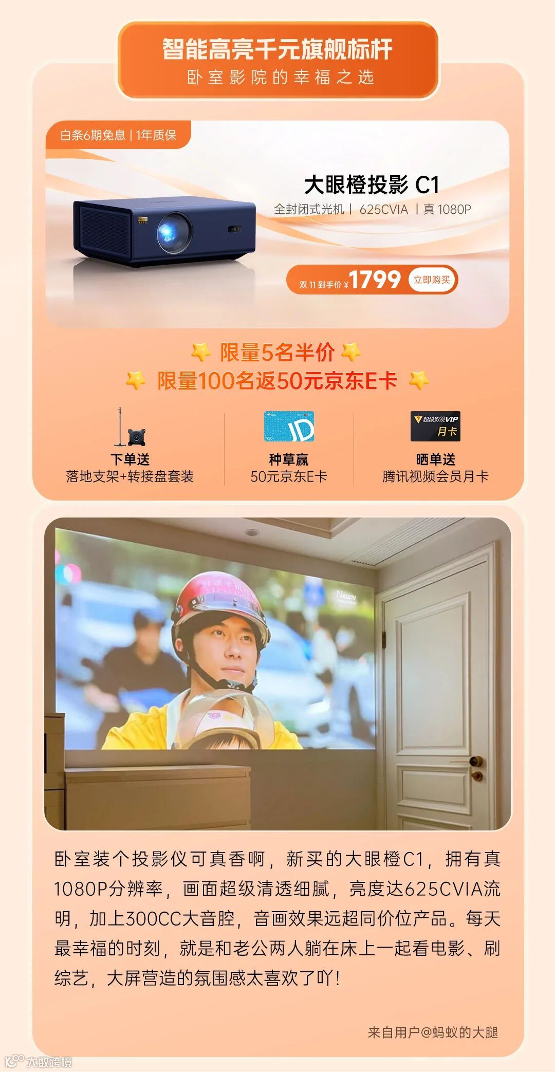 专注于智能投影仪研发智造与提供行业解决方案。关注大眼橙,了解大屏视界,分享品质生活。点我获取投影知识、玩机攻略、最新优惠、活动快讯、客服咨询等一手爆料!