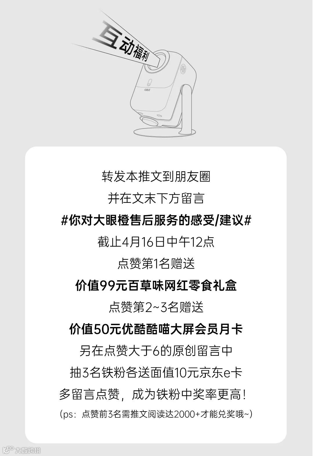 专注于智能投影仪研发智造与提供行业解决方案。关注大眼橙,了解大屏视界,分享品质生活。点我获取投影知识、玩机攻略、最新优惠、活动快讯、客服咨询等一手爆料!