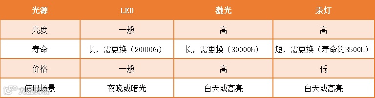 投影光源目前常见光源有LED、激光、汞灯三种,汞灯光源亮度高、功耗大、体积大、光源便宜,寿命在3500h左右就可能需要更换。光源的使用寿命,一般来说,激光>LED>汞灯。