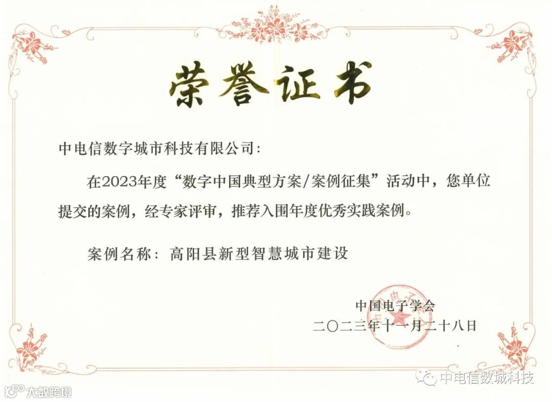 《高阳县新型智慧城市建设项目》通过专家评审,成功入选“数字中国优秀实践案例”。