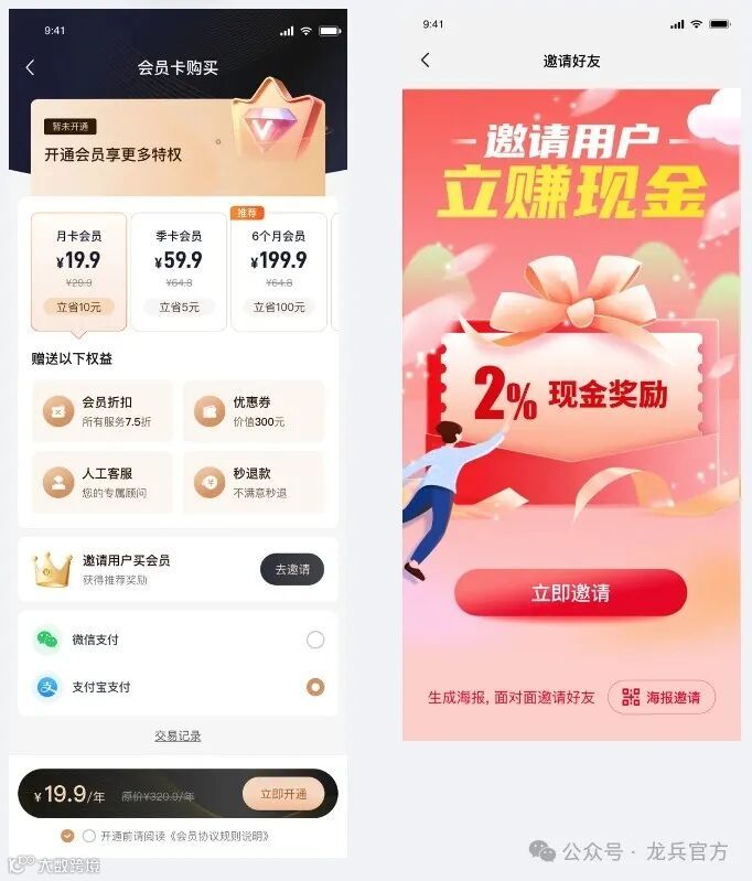 会员系统二(新):购买会员卡,在有效期内可享受会员折扣,技师邀请用户购买会员卡,还可以获得佣金。
