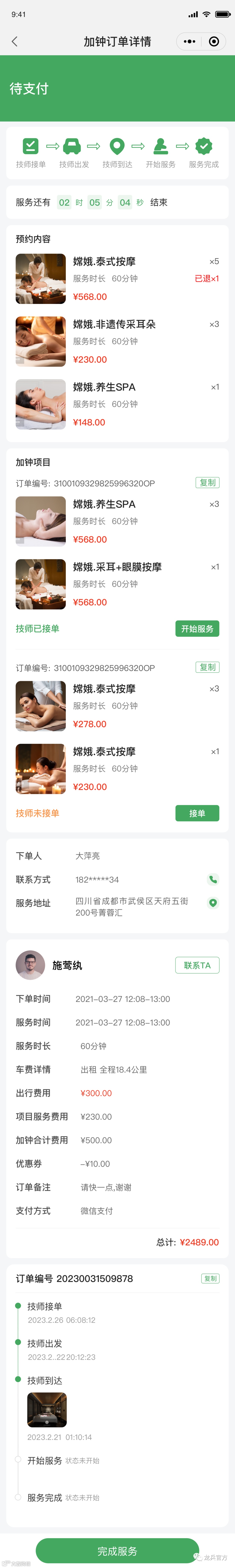现在加钟订单直接并入主订单,不会单独显示在订单列表,能够更直观的看到订单的详情,并且优化了技师接加钟订单需要按两次开始和结束的按钮,现在只需要在加钟订单结束时,按结束按钮即可。