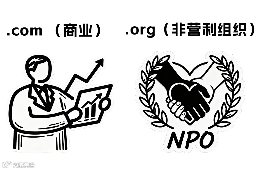 如.cn(中国)、.de(德国),代表国家或地区身份