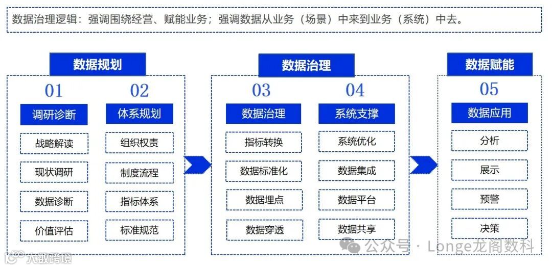 3、完善数据治理制度:制定数据管理制度和规范,明确数据的采集、存储、处理、共享和使用等方面的要求和标准,为数据治理提供制度保障。