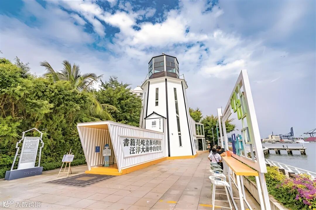 灯塔图书馆位于盐田区海山街道海景公园海滨栈道上,建筑面积342.67平方米。以“书籍是屹立在时间的汪洋大海中的灯塔”为设计理念,外观融合港口集装箱轮船造型与灯塔概念,与海岸风光及地域文化资源共同构成新的海岸阅读场景。
