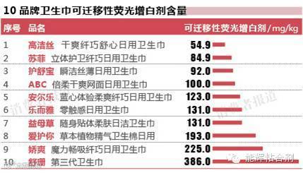 卫生用品中可迁移荧光物质一直以来都受到公众的广泛关注。《消费者报道》杂志于本月初撰文《十品牌卫生巾均含荧光增白剂》,专题报道了其送检的乐而雅、护舒宝、苏菲、娇爽、ABC、益母草、安尔乐、高洁丝、舒珊和爱护你等10大品牌卫生巾产品均含有可迁移荧光增白剂。引起了消费者的热议。