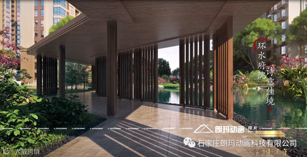 项目采用“一轴两环九尊院”的景观结构,营造“水韵九境”的景观典范。