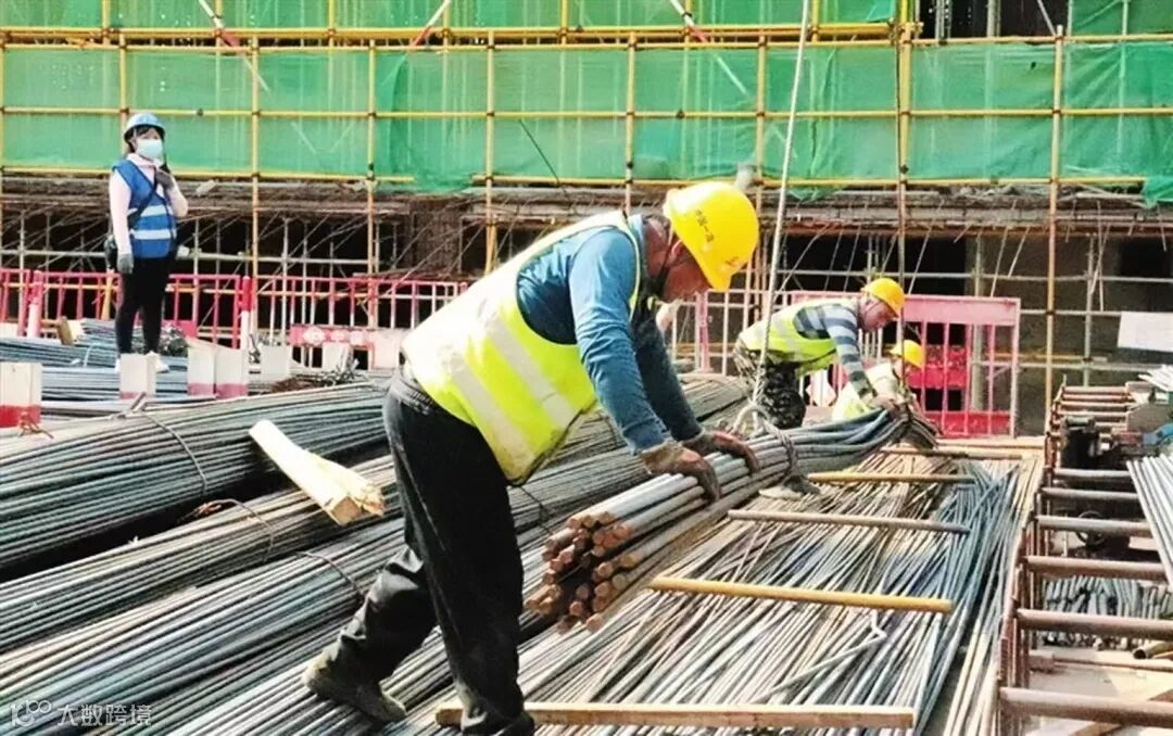 2月22日,在三亚崖州湾科技城国家热带农业科学中心综合实验室项目,施工人员合力搬运钢筋。