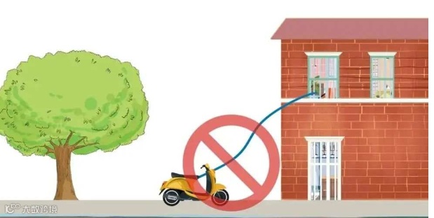 禁止违反安全用电要求,私拉电线、插座给电动自行车充电。