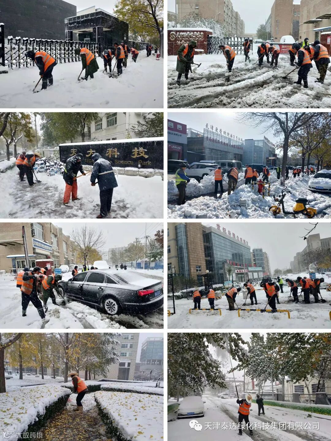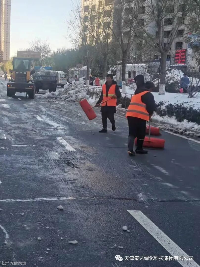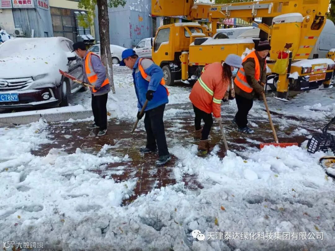 面对此次暴雪极端天气,泰达绿化科技集团高度重视、提前准备、迅速行动、全力应对,力争尽快将积雪清理干净,为市民创造通畅、安全的出行环境,努力将对绿地的危害减小到最低限度。