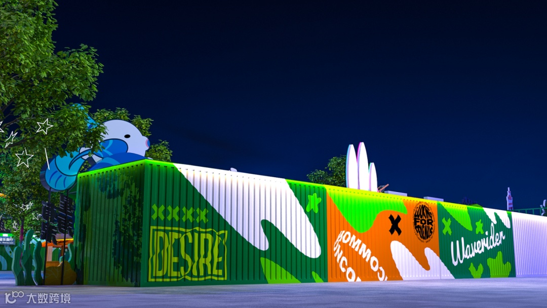 以“海岛风情+露营场景+潮酷集装箱”的风格