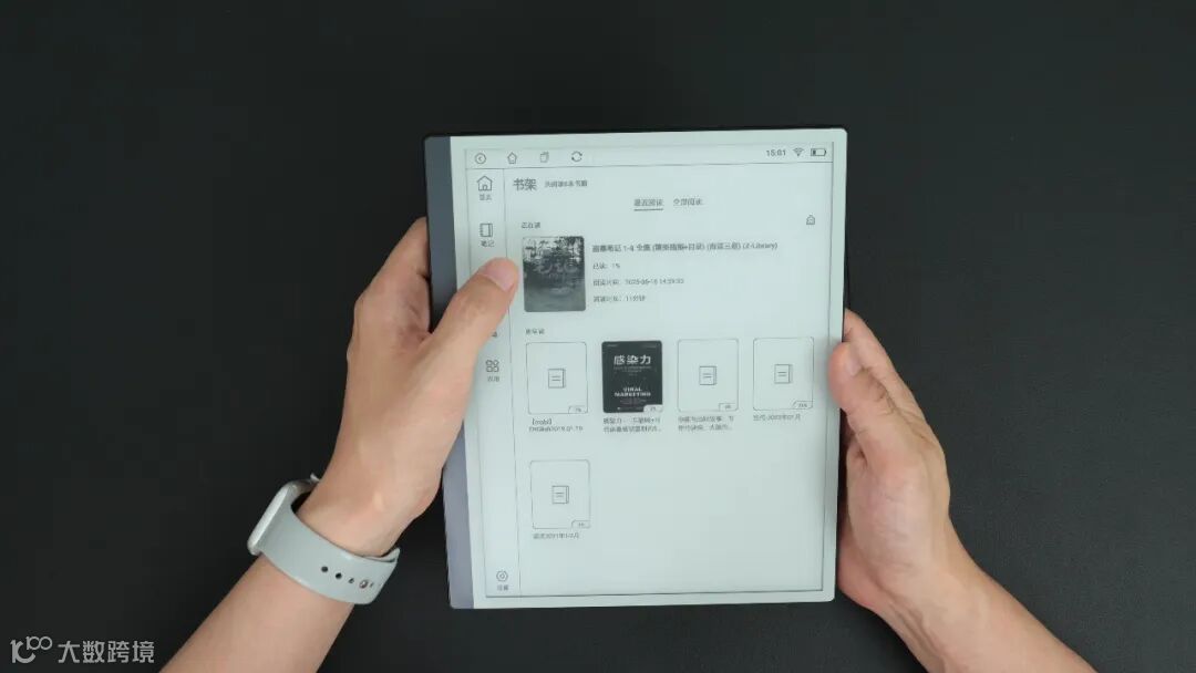 10.3 英寸的E-ink电子墨水屏配合极窄边框,带来几乎满屏的视觉沉浸感,摆在桌面上仿佛一本摊开的《经济学人》杂志,简洁中透出精致感。
