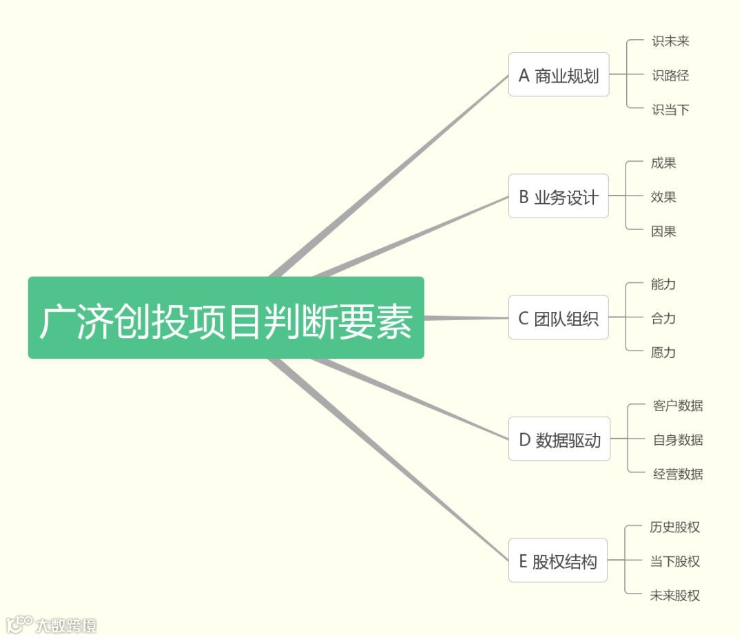 大家如果有创业的想法的话,我建议BP要突出这5个要素,这也是广济创投对待创业项目的评定标准。一个合格的投资标的可以在这五方面有突出,但弱项不能低于底线。