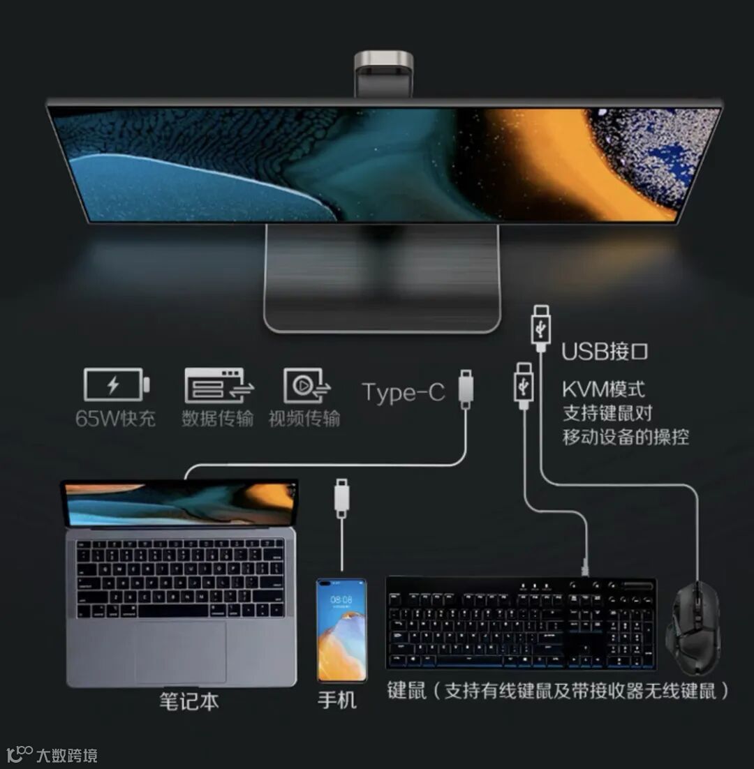 可以直接用Type-C连接线接到Macbook或者Mac studio上,能为移动办公设备反向充电。