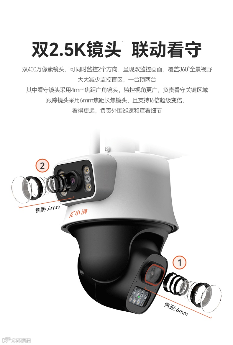 双监控画面,双镜头联动看守