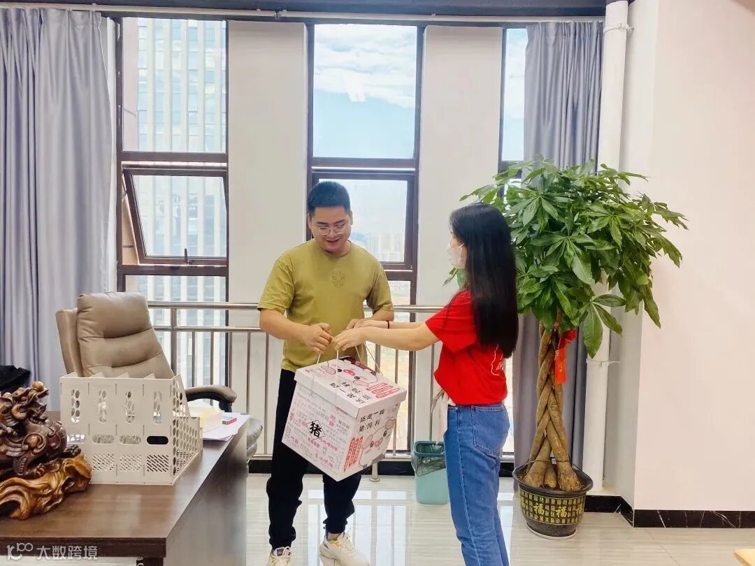 今天是南康跨境电商产业园迎来的第四个“双11”,随着双十一的到来,电商企业摩拳擦掌,百舸争流,进入到了最紧张的奋战状态,南康区商务局、南康区电商产业工会、南康跨境电商产业园党支部、南康跨境电商产业园运营方臻顺集团为园区电商企业做好了全面助力双十一工作。11月10日晚上19:00分,南康区副区长谭晓芳、南康区商务局局长刘晖、淘宝天猫(赣州)商家运营中心负责人李杰以及南康区电商产业工会主席陈晓红等一行莅临南康跨境电商产业园,向奋战双十一的电商企业进行慰问,并发送加油大礼包为其加油鼓劲,园区运营方臻顺集团副总裁刘静陪同慰问。