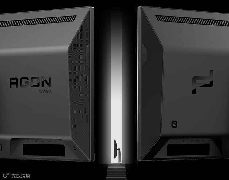 显示器的背面还有保时捷设计和AGON的高亮注塑LOGO,进一步彰显产品的格调。五轴OSD摇杆操作OSD菜单,上手简单,不需要学习过程。