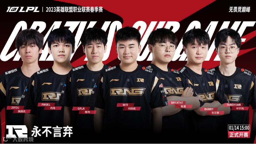 LPL春季赛已经结束了第一个比赛日的争夺,RNG也迎来自己的赛季首秀,经历过一波转会期后,新中单Tangyuan和辅助Bunny以及上单呼吸哥、打野WEI、下路GALA、这三个老将组成了RNG新赛季的首发阵容。新阵容毫无疑问的引起了观众们的热议,但凭借着出色的表现,以及上单Breathe的蜕变,RNG以2-0的总比分成功击败了OMG,拿下了新赛季的开门红。