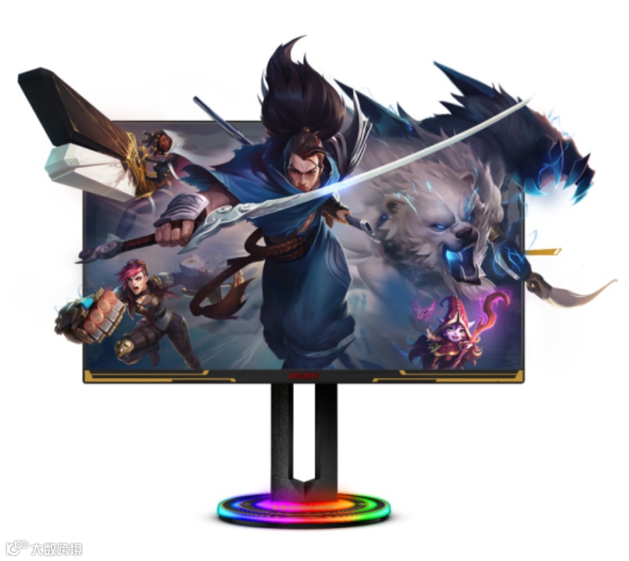 首先,设计上AG275QXL采用了大量《英雄联盟》正统元素,打造出玩家最熟悉的峡谷氛围感,《英雄联盟》专属开关机音效,LIGHT FX SYNC互动灯即时响应游戏事件,将峡谷场景延伸至屏幕之外,氛围感MAX。