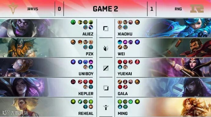 V5利用TP差人数优势先拿下小龙,RNG局势稍劣但经济方面仍紧咬,9分钟RNG寻得机会拿下先锋后再拿到小龙扳回一城,12分钟推掉上一塔;21分钟大龙坑RNG出现失误,V5 0换3后拿到大龙,29分钟大龙团RNG找回“场子”0换3后再拿下大龙;32分钟中路抓到对方上野后一波推平高地结束比赛,本局MVP给到Xiaohu灵罗娃娃——格温,目前 RNG 1:0 V5 暂时领先。