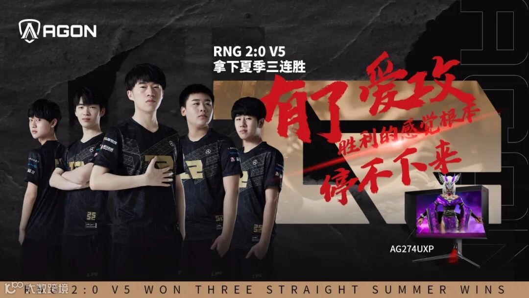 AGON爱攻旗下的电竞大金刚AG273QG也正以专业电竞的视讯实力助力RNG日常训练及赛后复盘,保持战队巅峰状态,随时火力全开!