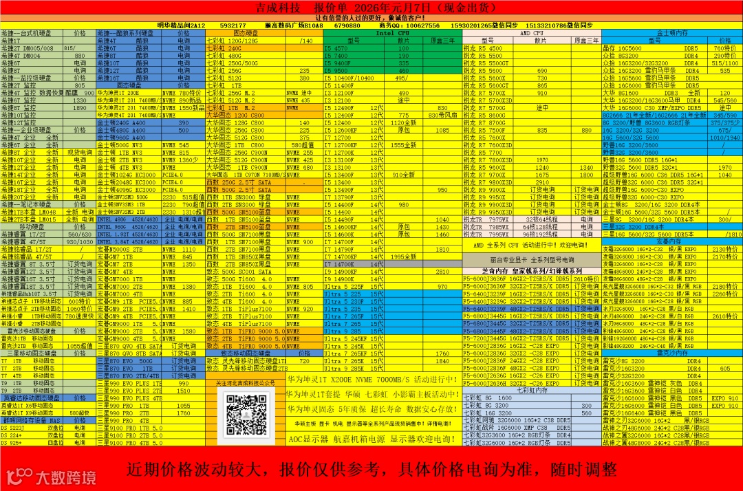 导读:吉成科技报价单 2026年1月7日
