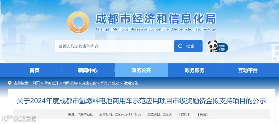 关于2024年度成都市氢燃料电池商用车示范应用项目市级奖励资金拟支持项目的公示