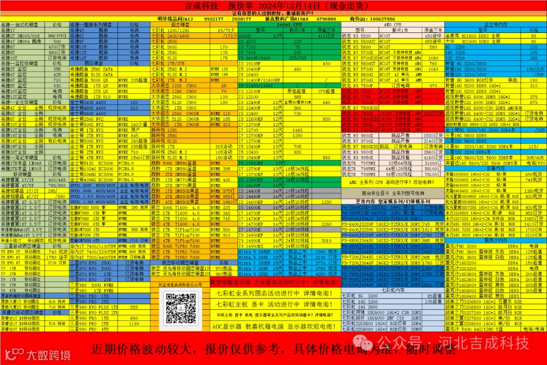 导读:吉成科技报价单 2024年12月14日