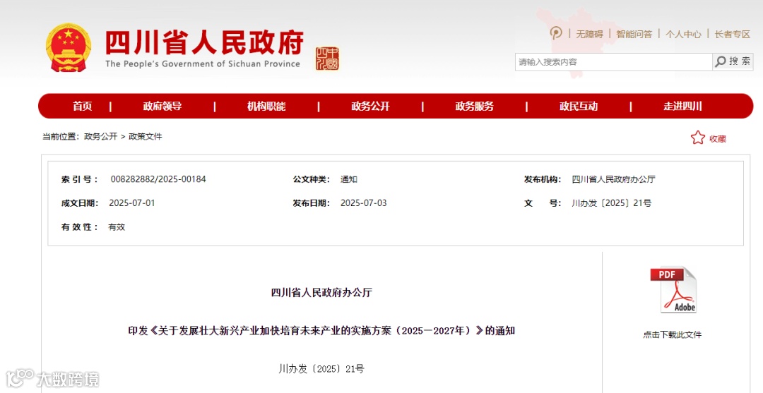 7月3日,四川省人民政府办公厅印发《关于发展壮大新兴产业加快培育未来产业的实施方案(2025—2027年)》的通知,以下简称《方案》。
