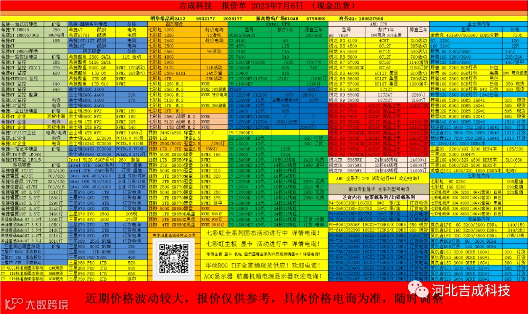 吉成科技报价单 2023年7月6日