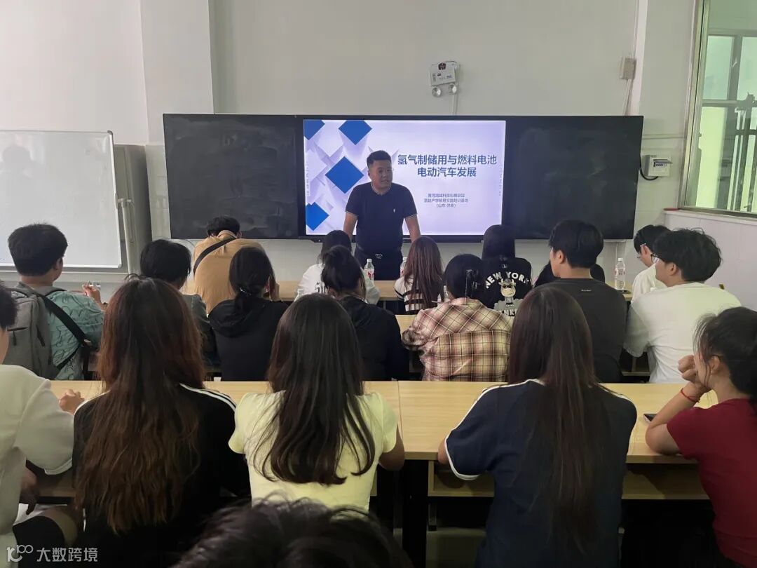 在黄河流域科技创新联盟氢能产学研用实践培训基地,中企才董事长孟令兴首先对创新创业产业学院师生的到来表示热烈的欢迎。随后,魏添工程师对氢气制储用与燃料电池电动汽车发展知识进行了全面而深入的讲解。其讲解内容着重于氢的来源生产、氢气的储运加、车用氢燃料电池以及国内外燃料电池汽车发展,旨在帮助同学们全面了解氢气重点应用领域车用燃料电池以及燃料电池车的发展。通过讲解,同学们对氢能制储运用以及燃料电池车的发展有了初步认识。