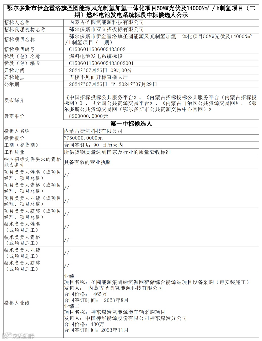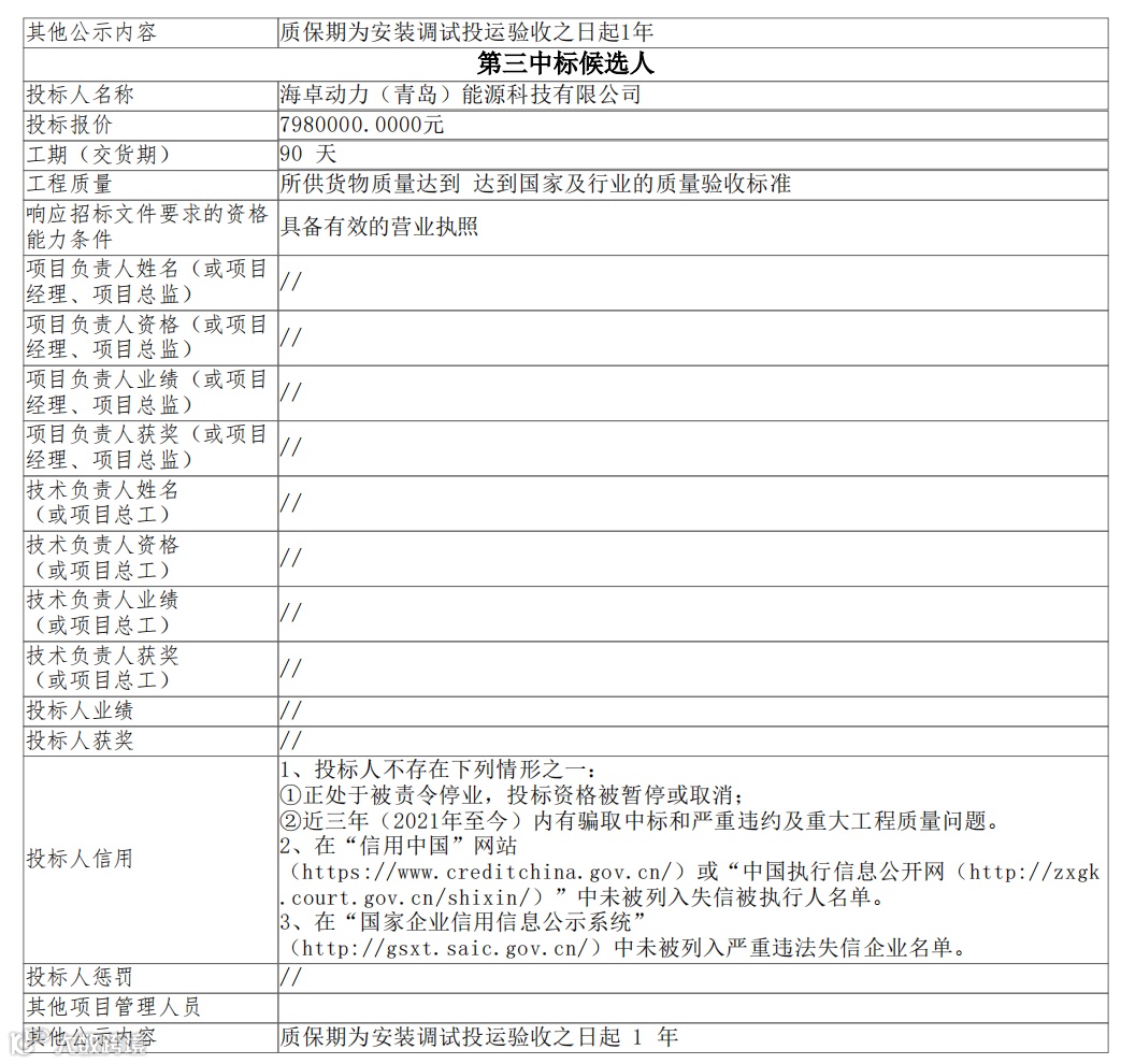 捷氢科技/海卓动力拟中标燃料电池项目