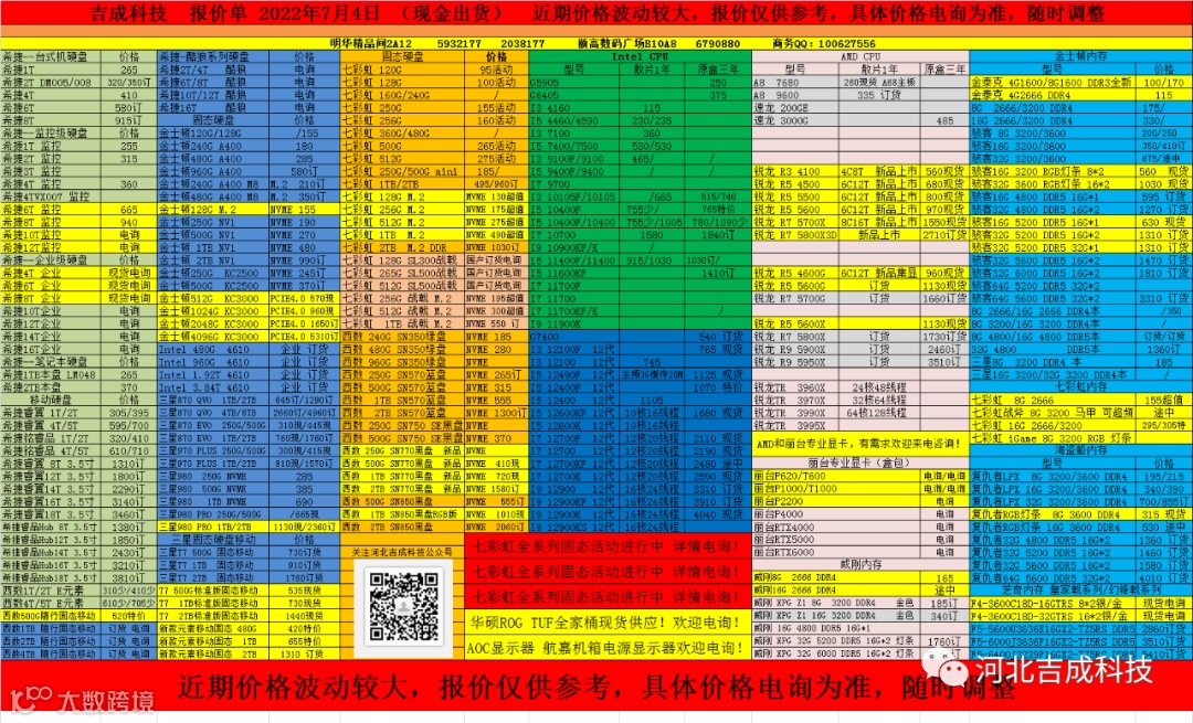导读:吉成科技报价单 2022年7月4日
