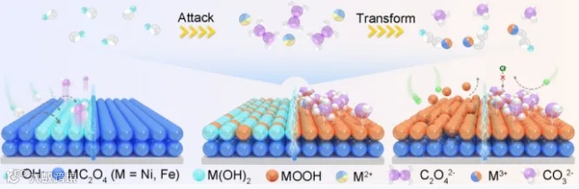 图3 原位碳氧阴离子自转化策略用于碱性海水氧化