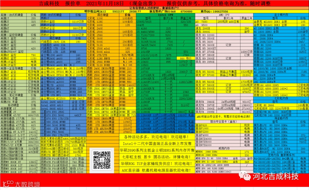 导读:吉成科技报价单 2021年11月18日