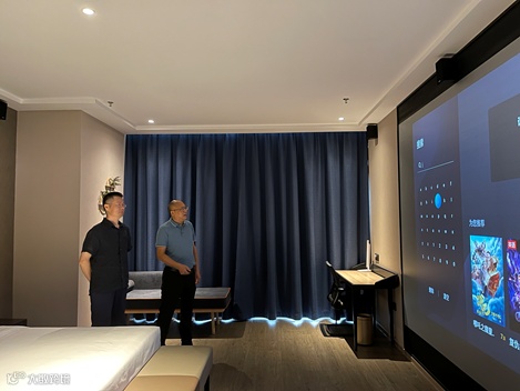 陈惠波董事长对陈军一行的到访表示热烈欢迎,详细介绍了检测所南方中心的建设情况及在支撑大湾区数字电影科技赋能的核心价值和意义。同时,邀请陈军主任参观和体验了定军山有戏电影酒店,根据《点播影院、点播院线管理规定》的标准要求,采用最高安全级别的点播影院放映系统和设备(安全级别三)、高质量及合规公示的版权内容供应、以及对接国家电影专资的点播院线计费系统,打造的“电影+酒店”的文化体验新型空间。满足消费者多元化、个性化、高质量的文化体验需求,开展差异化的电影跨界融合发展。