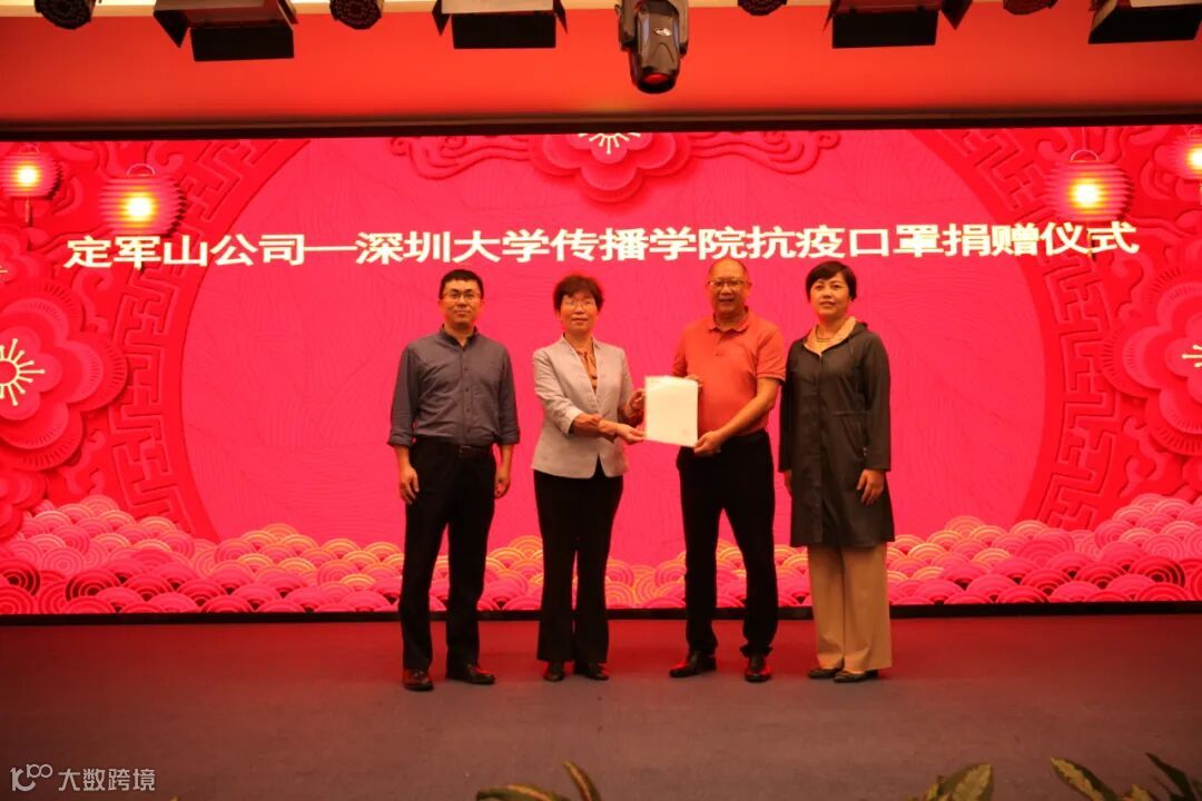 “定军山公司—深圳大学传播学院抗疫口罩捐赠仪式”。校园疫情防控当前,定军山向传播学院捐赠
