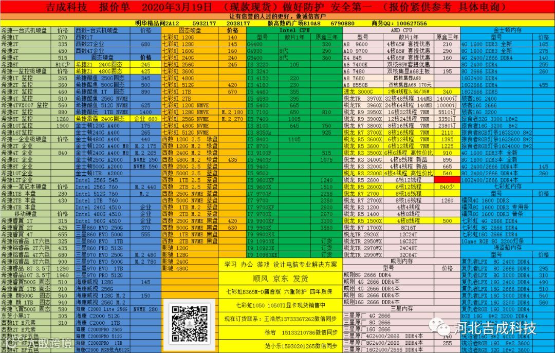 导读:吉成科技报价单 2020年3月19日