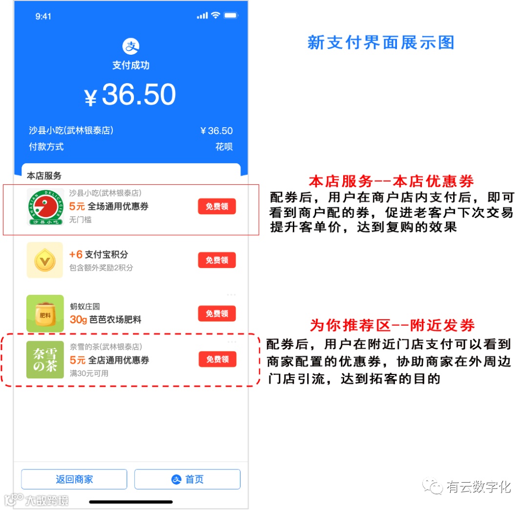 新支付成功页是支付宝重要的中心化流量之一,能够给商家带来巨大的流量价值。