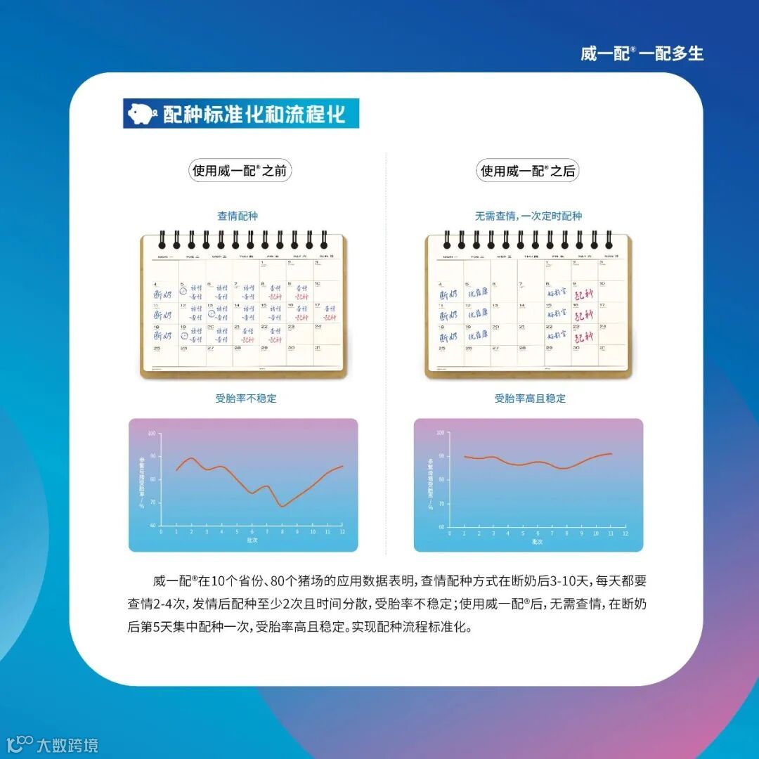 继第十届李曼大会首次对外展示一次配种方案-威一配®,经过一年多沉淀和积累,威一配®已在超100万头母猪及Top10集团应用效果显著,此次再度携威一配®参展,希望此突破性革新技术受益于更多养殖户,实现配种流程标准化、降本增效。