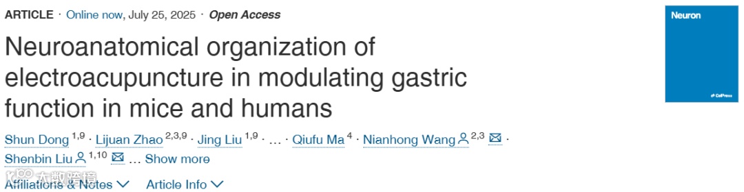近期,复旦大学脑科学研究院柳申滨研究员和复旦大学华山医院王念宏教授团队在《神经元》(Neuron)杂志上发表了一项重要研究成果,揭示了电针调节胃功能的神经解剖学机制,并提出了电针疗法的强度和深度依赖性特征。这些发现为优化电针治疗方案提供了理论依据,并推动了针灸治疗从传统经验模式向现代精准医学的转变。